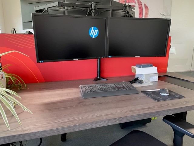 Op de dubbele zit-sta-bureau’s werden akoestische frames gemonteerd. Mooi en praktisch tegelijk!